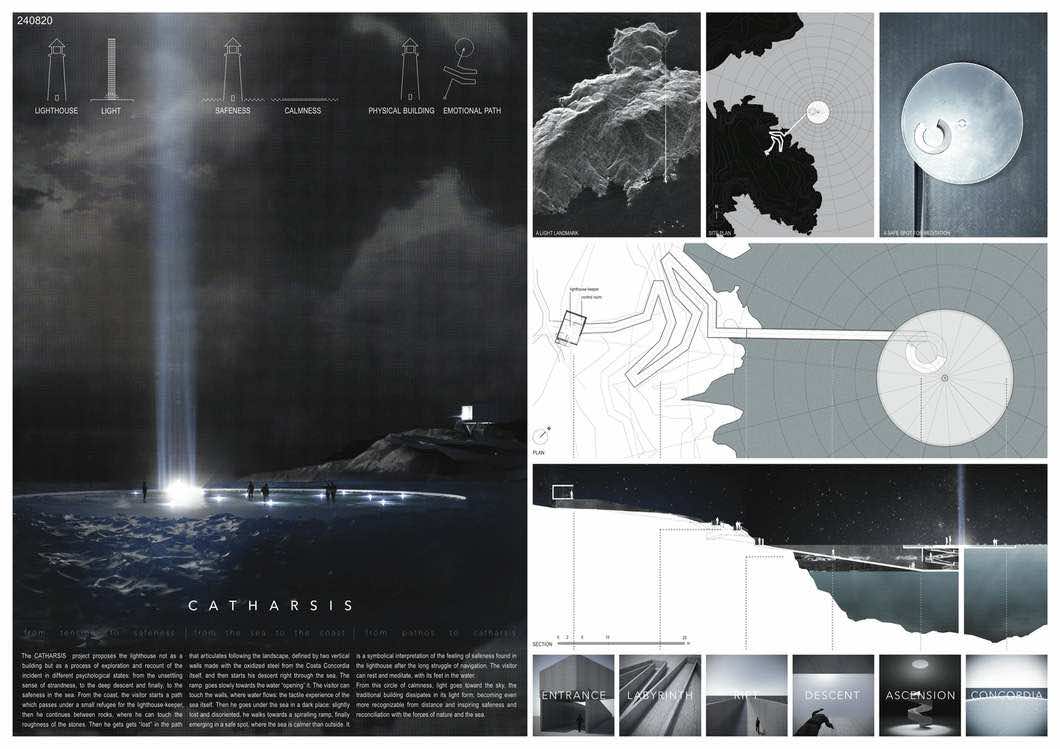 尽管这项工作是相当大的,但它更旨在作为设计练习,以找出解决危险问题的简单解决方案。灯塔的位置将成为托斯卡纳的吉格里奥岛。一个名为Concordia景观的设计赢得了这三个景观。它设想出一个明亮的桥梁或大规模安装,而不是为此目的的单一孤独塔。虽然,我相信灯塔也是海上历史的重要组成部分。从海岸开始进入大海,这种设计结合了人行道和各种设计精美的横梁。他们将在晚上用1000平方米的照明点亮,由太阳能电池板供电。