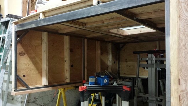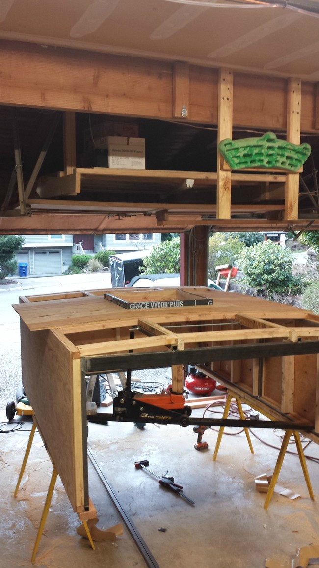 然后将胶合板添加到基本结构中,然后再添加2 × 4的木板。