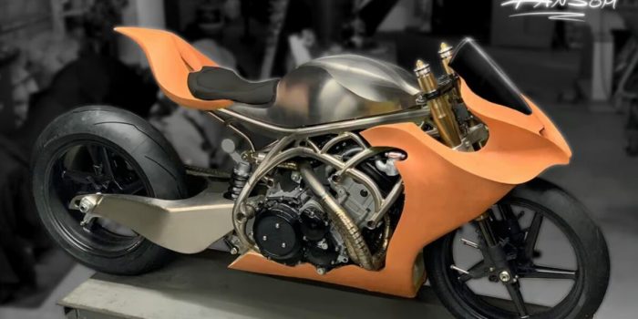 项目的核心是一个修改后的第二代铃木隼鸟号发动机,产生大约200马力。使用钛的大多数组件都是定制的。这包括一个漂亮的弯管状结构与一个新的几何,稍微向前倾斜引擎和降低它的框架。