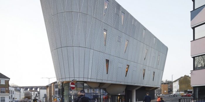 该建筑称为F51,在英格兰福克斯通。它是由慈善家罗杰·德·哈恩爵士(Roger de Haan)委托的,最初的计划是它将是一个多层的停车场。然后,它更改为停车场和滑板公园的混合物,然后团队最终定居在多层上的滑板场上。孩子们只需要支付名义上的1英镑(1.30美元)的会员资格即可使用它。