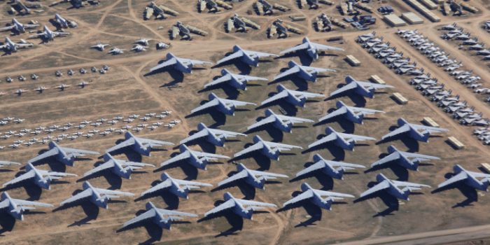 一家主要的飞机存储设施位于亚利桑那州图森的南科尔布路(South Kolb Road),被称为第309航空航天维护和再生小组(第309 Amarg)。该设施也被称为鲍尼德(Boneyard),居住在戴维斯·蒙塔恩(Davis-Monthan)空军基地。它包含一排不同尺寸和形状的飞机,从巨大的货物举重器到重型轰炸机,在炽烈的沙漠阳光下伸出了所有一动不动的。据飞机称,拥有2600英亩的地区,它拥有来自美国空军,陆军,海岸警卫队,海军,海军陆战队以及国家航空航天局(NASA)枪口的近4,000架飞机和13辆航空航天车辆。