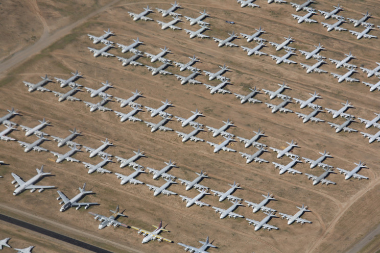 您可能想知道为什么这个巨大的存储设施位于图森。好吧,有一些原因。首先,亚利桑那州的气候条件需要更长的时间才能使飞机恶化,从而使它们能够在合适的工作条件下存放。此外,在提供大量面积的同时,沙漠可以具有成本效益。此外,伴随着碱性土壤,沙漠可以防止飞机浸入地面。