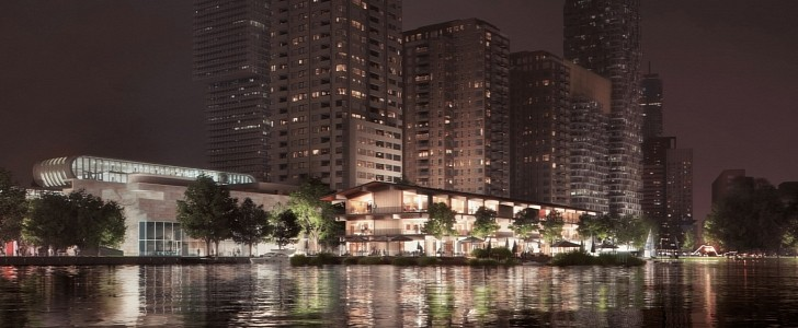 Powerhouse公司说:“我们设计的浮动办公室反映了其居民的价值观:全球适应中心。”