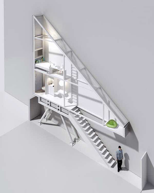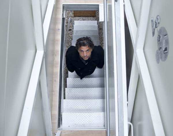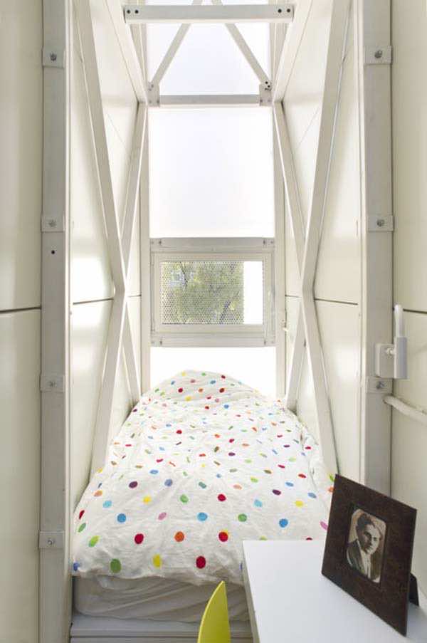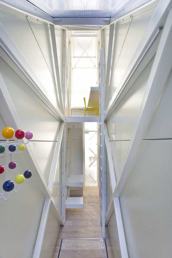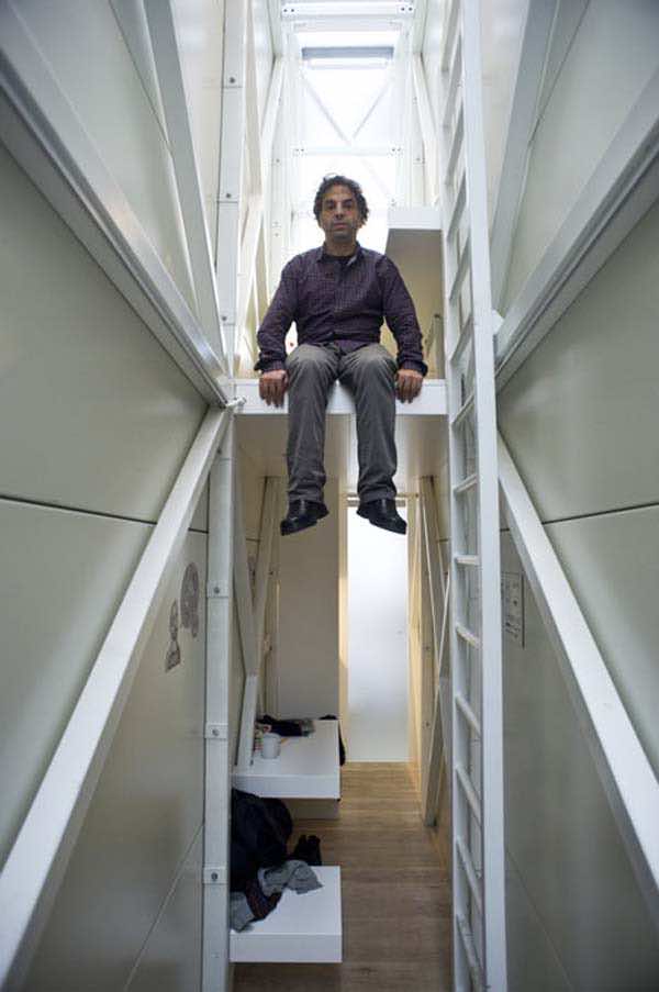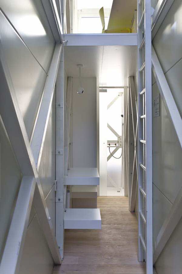 房子在高跷上抬起,并由主楼梯进入,而房屋中的每一层都可以通过狭窄的楼梯或梯子进入。建筑物的主要区域就像阁楼公寓的微型版本一样,整个房屋的空间完全不起作用,没有过多。对于那些希望亲自见到建筑物的人,可以在波兰华沙的Chlodna 22 Street和Zelazna 74 Street的建筑物之间找到它。对于您其余的人,下面显示了海角屋的图片。
