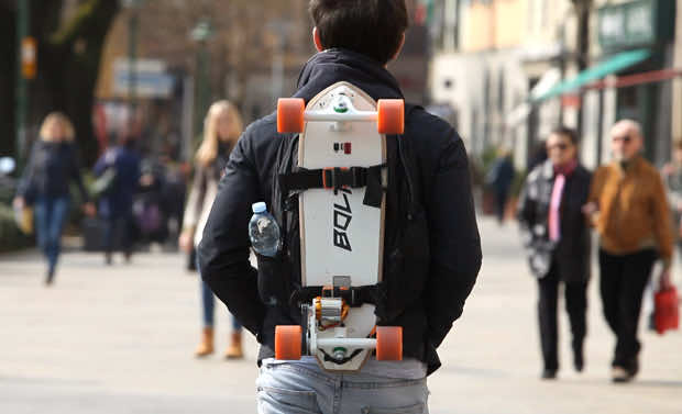 该板由一个2000瓦的电机供电,由一个5000毫安时的电池供电,运行约10公里。这个距离是完美的,因为螺栓成功地覆盖了一个普通大学生每天必须走的距离。它的最高时速为21公里,接近自行车的平均速度。这是滑板技术的一个非常重要的进步,因为滑板被自行车爱好者称为“慢”,因此博尔特在速度上赶上了两轮车。以这样的速度和自动推力,它可以与任何自行车的吸引力相当。另外,滑板比自行车酷多了!Bolt还配有后灯和后灯,以提醒驾车者他们的存在。