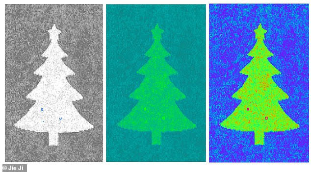 这棵圣诞树有14厘米高,因为它是由石墨烯构成的,所以它只有一层碳原子,只有三分之一纳米厚。它是从一卷10米长的石墨烯上切割下来的,用重新设计的层压机将其压成一片,然后用太赫兹辐射扫描。