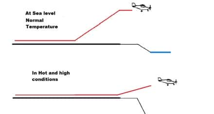 在炎热的天气下起飞是一种风险;但是,这样做并非不可能。它要求更长的跑道,以达到所需的起飞速度。虽然,历史上有示例,在略微起飞后,飞机立即坠毁,因为翅膀下方的压力较小,在凤凰城(如凤凰城)的炎热天气条件下燃烧不良。