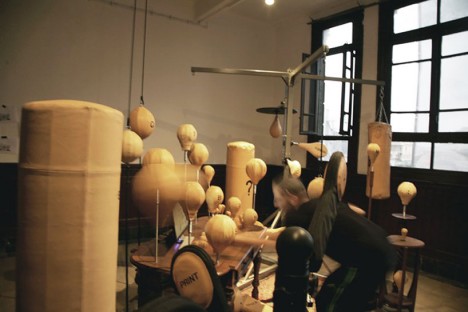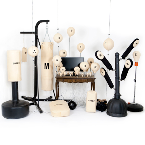 该公司的创始人说:“我们发现把一天分成工作时间和休闲时间是非常过时的。健身-电脑构成了一种新的生活/工作平衡宣言。这是一篇生动有力的声明,与坐在屏幕前的工作习惯形成鲜明对比。由于屏幕的静止不动,会导致疼痛,需要花时间进行锻炼才能治愈。电脑配有由沙袋组成的分布式键盘,这款健身电脑确保了打字成为一种全身体验。”
