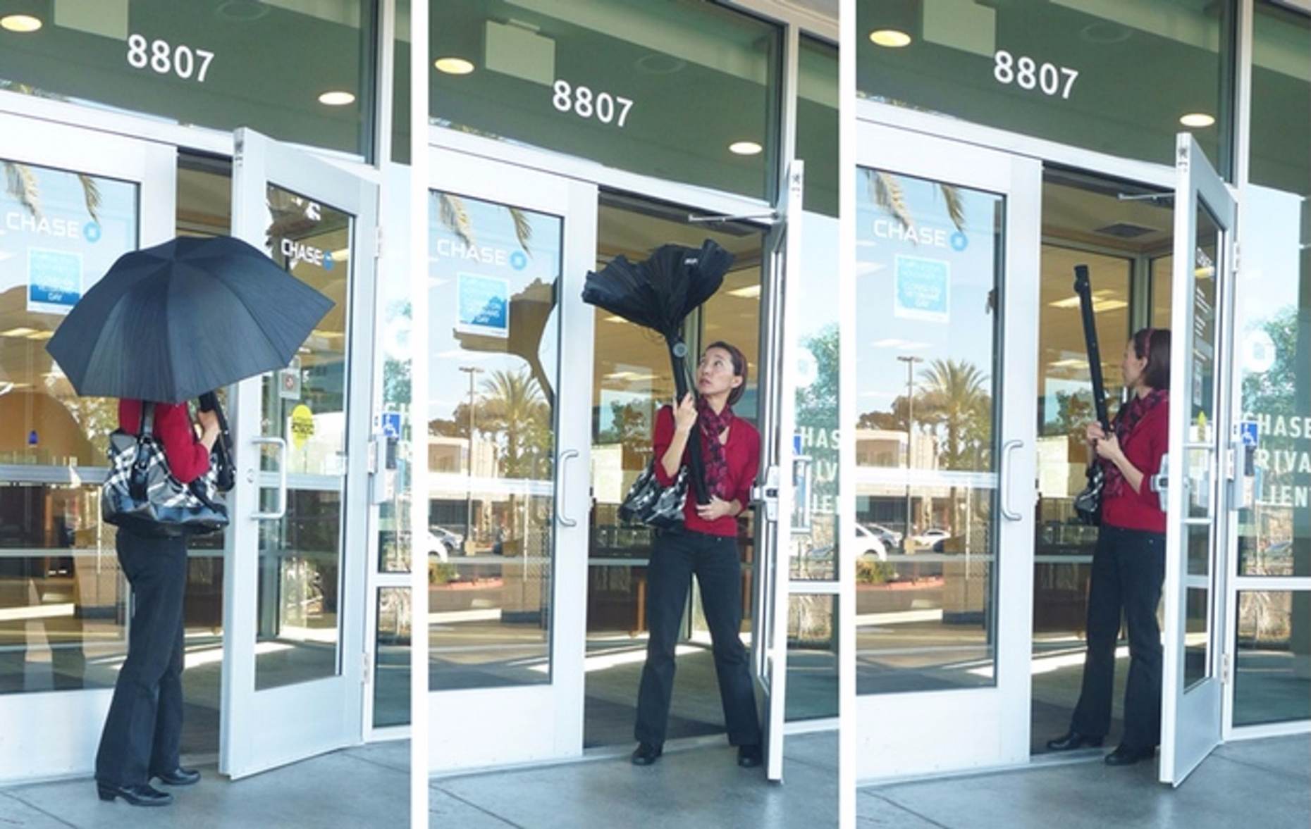 伞是一个祝福在雨天,然而,传统的设备构成问题;伞上的积水已经无处可去,当你关闭伞进入大楼。最终的结果是,游说、汽车、电梯等领域容易二次洪水。RainBender伞有一个独特的转折在其设计和特性一种由内到外的树冠,而不是折叠设计,消失在伞的句柄。