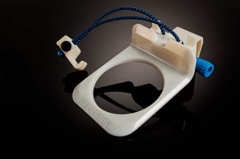 经济舱航班提供有限的空间一旦托盘表。克雷格·拉宾见面,谁想出了一个装置,允许乘客保持托盘表存放大部分的飞行时间。工具被称为Airhook,印章存放表能够房子电动设备一起喝酒和你的外套。