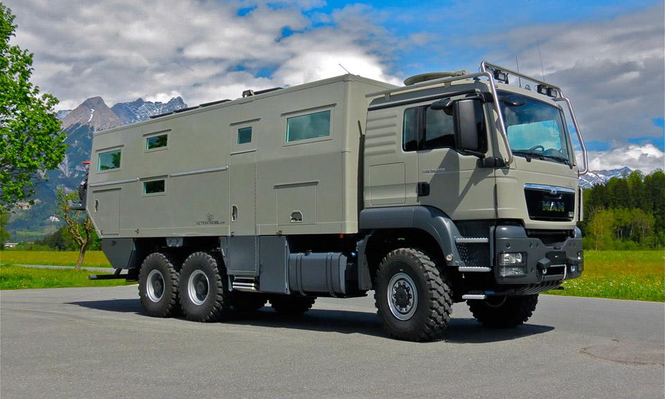 动作Mobil GlobeCruiser 7500是您的终极启示录汽车!532 hp,400升柴油发动机和6×6传动系统足以将您从任何灾难性沟渠中拖出,而装甲底盘可以抵御入侵的外星人或爆炸炸弹的攻击。