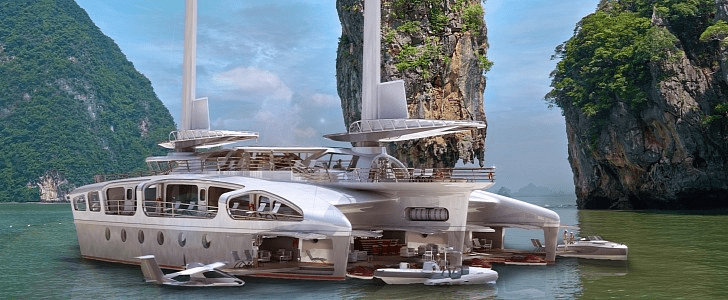 今天,我们就来谈谈这艘由加州设计师史蒂夫·科兹洛夫设计的豪华超级游艇。这艘特别漂亮的三体船在一种名为“主显节”。值得注意的是,这艘178英尺长的三体船属于最著名的超级游艇之一,是科兹洛夫的歌利亚系列的一部分。关于这艘超级游艇最有趣的事情之一是,它有两个倾斜的桅杆,现在可以让它直接到达更多的地方,包括巴拿马运河,旧金山,圣地亚哥等。这一切都是由于这些桅杆的可伸缩特性。