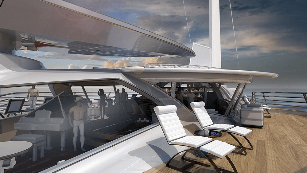 因此,这被认为是最雄心勃勃和最关键的项目之一,具有未来主义的方法。更不用说这些了自立式桅杆有能力向前倾斜约70度,通过这种方式,他们可以使游艇能够减少气流从145.5英尺到92英尺。由于这一点,游艇现在可以很容易地通过桥梁,因此,它的运动变得更加平稳和高效。此外,游艇的内部安装了大窗户,因为这些窗户提供了令人兴奋的景色,增加了它的美丽。站在这些迷人的窗户旁边,你可以360度地看到整个地方。