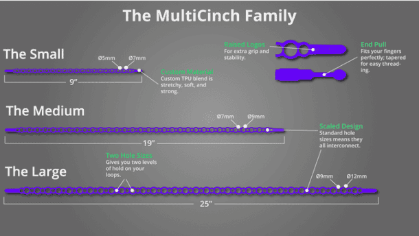 中型多芯长约18英寸,宽2英寸。有关Multicinch项目的更多信息Kickstarter。