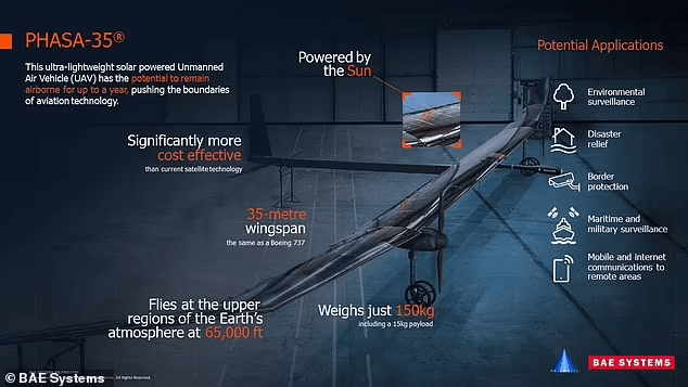 PHASA-35革新通信网络的潜力,提高监测能力,并促进关键服务在远程位置,这个太阳能无人机航空航天技术预示着一个新时代。爱游戏ayx体育
