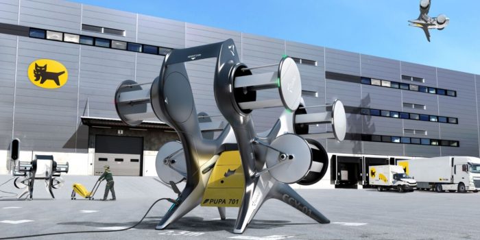 独特形状的无人机主体旨在接受“包裹空运的吊舱单元”(PUPA)货舱。这些是亚马托的设计,当该公司从事几项工作时,该研究使用了PUPA701,该研究是作为整洁的小型手推车建造的,能够载入约30公斤(66磅)的货物。