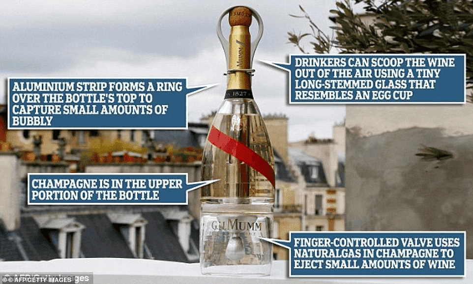 The bottle has tiny spheres of bubbly that astronauts can drink as they float in zero gravity. It is the first bubbly to receive approval with space requirements certified by the French National Centre for Space Studies (CNES).