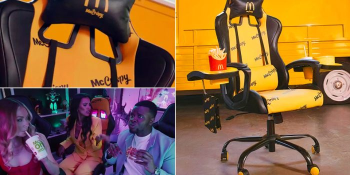 除此之外,这看起来就是标准的游戏椅了。设计是熟悉的;它被装饰成麦当劳的颜色,还配有一个腰椎支撑枕,如果你坐得太久,它会慢慢损害你的脊柱。如果你想把你的屁股放在上面,你需要一点运气,因为麦当劳赠送了四把这样的椅子作为一个Facebook的竞争(仅限18岁以上的英国居民)。世界上有四个幸运的人将在未来几周实现他们油腻的幻想。