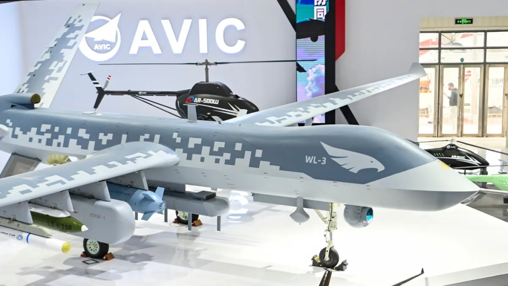 中国在一次大型航展上展示了其最新的军用无人机模型翼龙-3,这是第一款在装备空中自卫的情况下超过洲际射程的无人机。