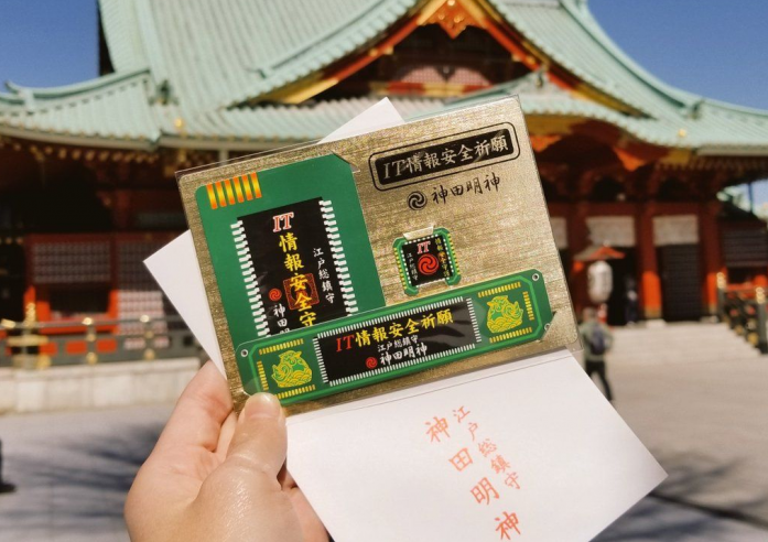 这个特殊的IT护身符被视为抵御任何类型伤害的精神盾牌,代表着巨大的成功。但是,它是由一只手大小的cpu形状的标签组成的,可以粘在电脑上的一个设备上。不仅如此,电脑操作员还需要在脖子上戴一块更大的纸板,最好是戴在手上。因此,正如Kanda Myojin所强调的,通过正确地满足这些要求,计算机将免受任何恶意软件威胁、病毒、冻结条件或任何不可预见的情况的影响。这个护身符的价格是1200日元。如果你想购买这个护身符,你必须亲自前往神社,如果是海外顾客,因为目前只有国内用户可以使用运输设施。