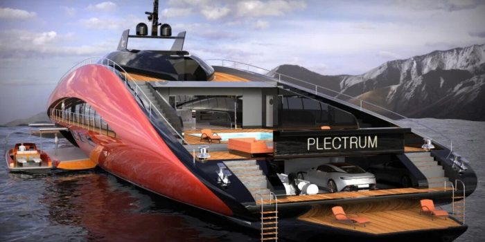 公布的意大利设计公司拉设计工作室,一个疯狂的£7000万“飞行”游艇,巨大的翅膀,这样就可以滑翔已经公布了。名叫拨子,这壮观的242英尺长的游艇使用箔系统超越波和邮政在75节。