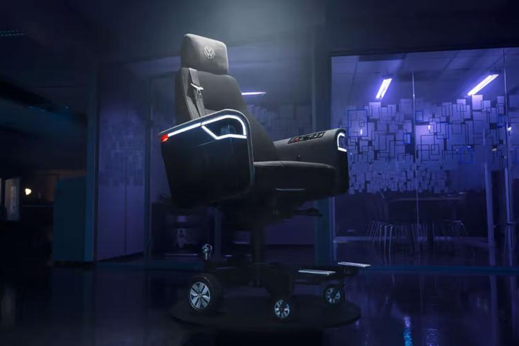 大众挪威公司发明了一款与众不同的电动办公椅。它有一个带有刺绣大众汽车标志的加热布制座椅,一个可作为音乐播放器和后视摄像头的触摸屏,一个360度传感器,内置扬声器,4英寸铝轮辋,甚至还有一个功能性喇叭。