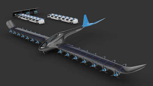 HES对飞机的规格几乎没有告诉黑白,但是他们揭示的概念载体的图像显示了一架飞机,上面有14个螺旋桨附着在绿色氢燃料电池上。
