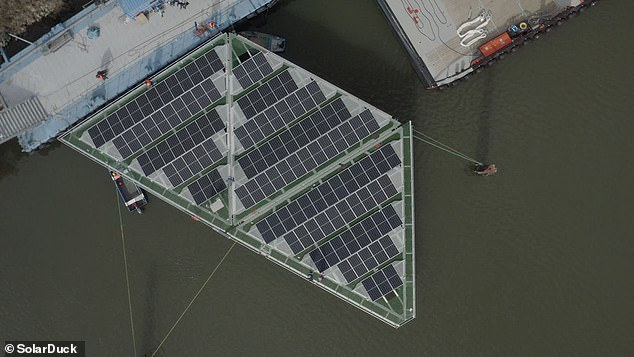 RWE将Solarduck的系统描述为基于设计,使太阳能电池板在水上“漂浮”米,并像地毯一样骑行。