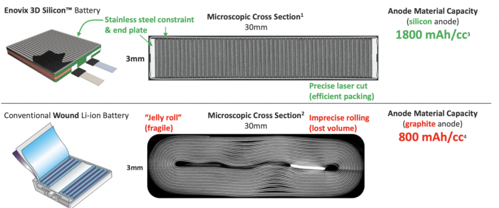 Enovix在硅锂离子电池中测试了其0.27 AH EV细胞中的快速充电,并声称具有革命性的3D体系结构和约束机制。另外,细胞具有功能齐全的硅阳极。根据Enovix的说法,该材料长期以来一直被誉为下一代电池阳极的关键技术。爱游戏ayx体育