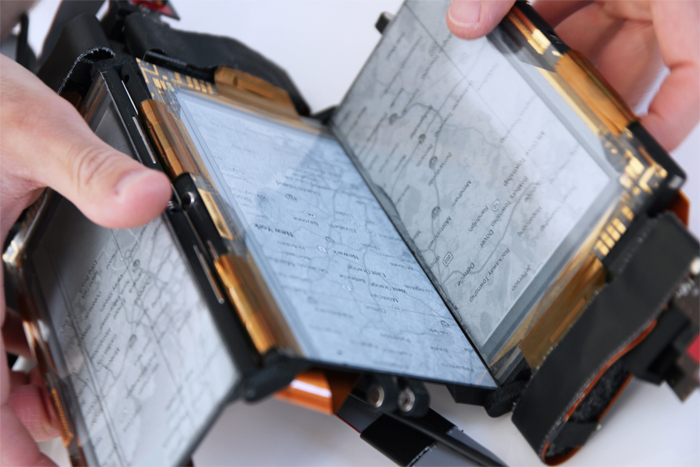 原型有许多磁铰链和轻量级的电子墨水显示,薄,可以分离。这些屏幕的添加和/或移除确实改变智能手机的形状与这个特定的智能手机,但奇怪的是如前所述,这个智能手机设计,以将更改合并到其功能根据屏幕是如何连接或分离。