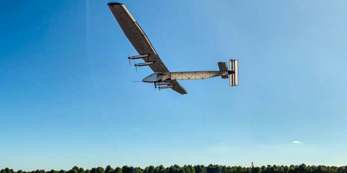飞机命名为太阳脉冲号2去世界各地五年前不使用任何液体燃料。飞机是太阳能,顾名思义。这不是quickest-it花了一年半的圆,覆盖26718英里。然而,这是一个重要的概念和技术的成就。