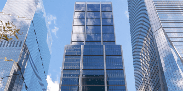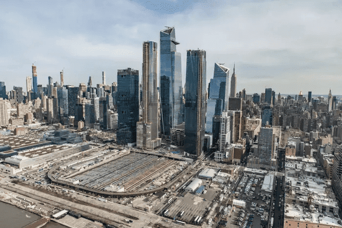 这座1011英尺(308米)高的大楼被称为哈德逊广场50号,拥有300万平方英尺(278709平方米)的办公空间,包括科技巨头Meta和投资公司贝莱德的办公室。