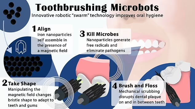 科学家创造了一群变形的微型机器人,可以同时刷牙,冲洗和牙线。