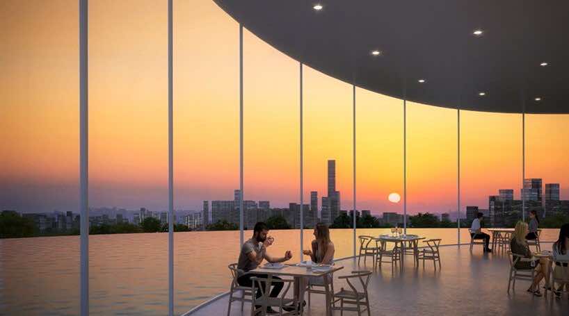 顶级甲板旨在吸引当地人以及来自世界各地的游客。它从海拔880英尺的海平面上展示了城市和海湾的壮丽景色。这种严峻的结构上的建筑很快将成为该市最受欢迎的社会综合体。