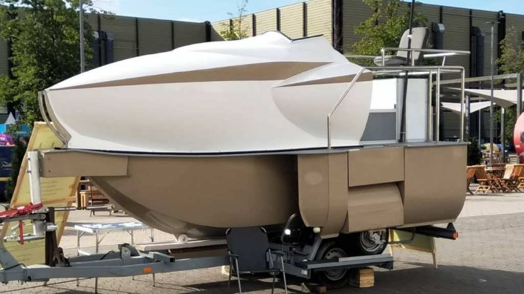 苏格兰人结束了需要单独的船拖车的需求,同时仍然适合湖泊或海滩。该车辆在今年的杜塞尔多夫大篷车沙龙上展出。