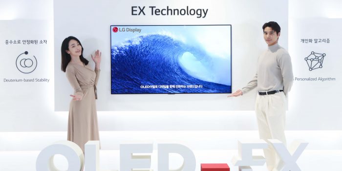 LG显示已正式启动OLED前该公司声称,在生产过程中使用氘的新型OLED展示使OLED EX比目前的大屏幕OLED电视高30%。