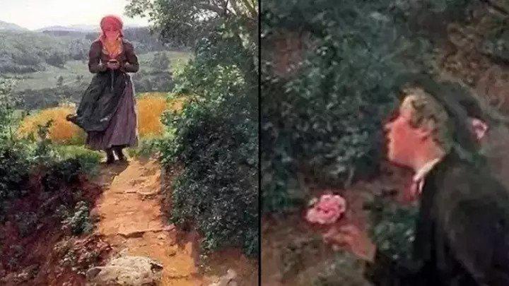 偶然发现这幅画的人是彼得•拉塞尔,一位退休的当地政府官员在格拉斯哥,追求画廊的墙壁和他的伙伴。它描绘了一个令人愉快的场景的女孩专心地看着手里的东西,而一个年轻人看起来,等着给她一朵花。