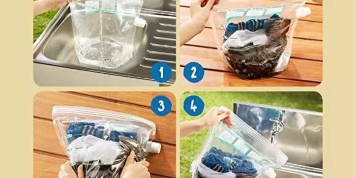 要开始这个过程,你需要摇动袋子,使洗涤剂和水与衣服混合。之后,你必须用手慢慢摩擦袋子,去除任何污垢或灰尘颗粒。这和你在家里手洗衣服的过程是一样的。为此,当你最终确认衣服已经被吸干并释放出脏水时,然后轻轻打开包底部的阀门,将脏水排出。