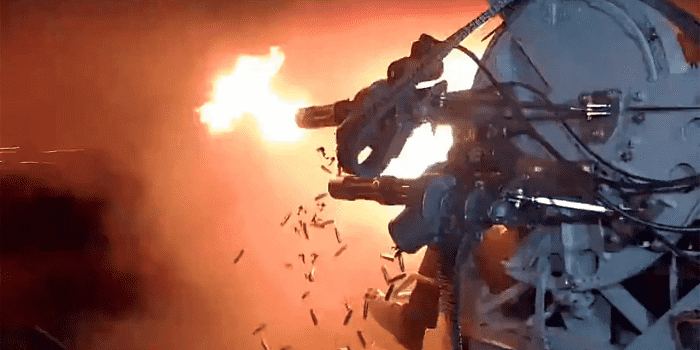 Dillon还在Instagram上分享了四轴微型火炮系统的细节。他说:“每把枪以狄龙工厂的标准射速大约每分钟3000发,总射速为每分钟12000发。每门mingun都连接到一个可装3000发子弹的弹匣,在系统需要重新装填之前,可以发射12000发子弹。”他进一步补充说:“我们最终‘只’发射了24000发子弹,因为将弹带装进机载弹匣是非常艰巨的任务。”