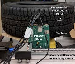 我们的系统将这些雷达重新利用,以进行轮胎磨损估算。”该设备中使用的技术是逆合成光圈。该技术受益于轮胎的旋转,以提高雷达的分辨率,从而使它们能够测量毫米变化。另外,我们嵌入了用作标记的金属添加中。这些有助于雷达在低可见性环境中(例如尘土飞扬或雪道)中得到反射。