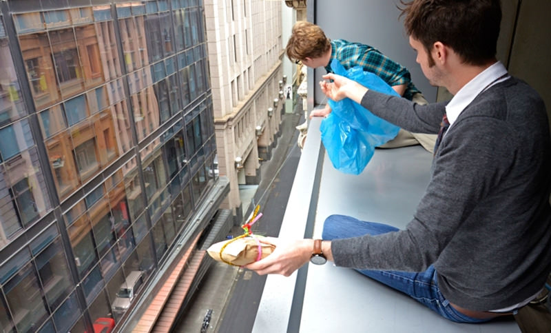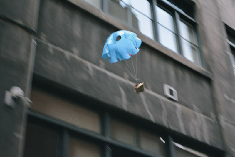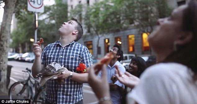 对,那是正确的。三个创新的家伙在澳大利亚墨尔本开设了他们的弹出餐厅Jafflechutes。食物被降落伞飞向街头等待的顾客。
