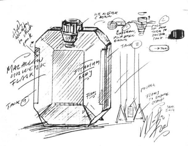 这艘船由156个部件组成,有两个独立的钛罐,所以你可以喝两种威士忌。它配有一个不锈钢口,这使得它很容易在两个水箱之间切换。它的盖子是一个连接臂,隐藏了1毫米的“球点击器”,点击它会告诉你它是否完全打开。球本身会打开一个小孔,当你倒出异国情调的美味时,瓶盖就会打开。