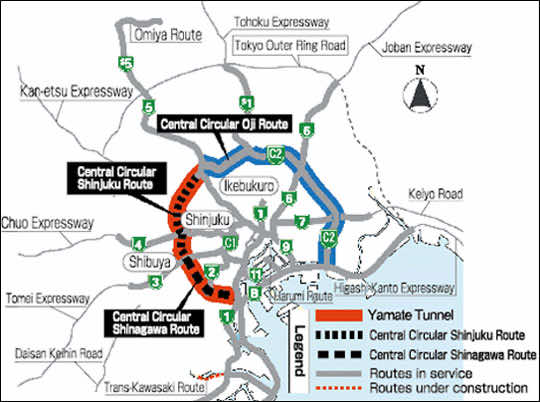The Yamate Tunnel is the world’s second longest road tunnel, and the longest located outside Europe, which carries the Central Circular Route (C2) of the Shuto Expressway in Tokyo, Japan, from the Takamatsu on-ramp in Toshima to near the ?i Junction in Shinagawa. It has a length of 18.2 kilometers (11.3 mi).