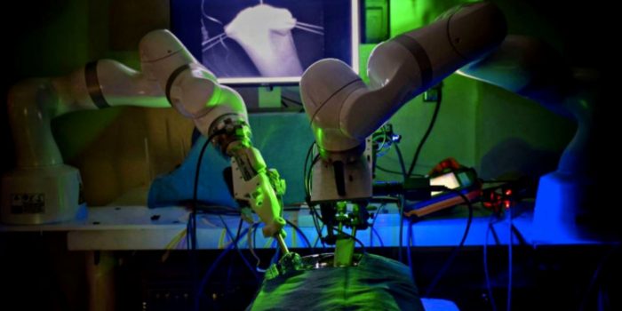 由约翰·霍普金斯大学(Johns Hopkins University)的一组研究人员制作的机器人自行对猪进行了钥匙孔手术。此外,他们声称机器人外科医生的结果“要好得多”,比人类的结果要好得多。