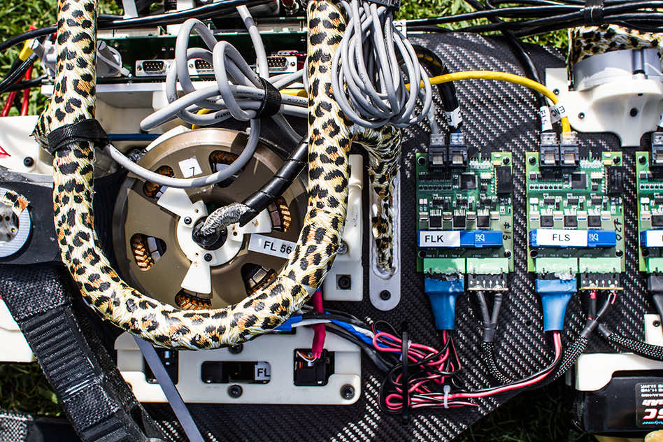 机器人的动力都要归功于一个定制设计的电机,该电机具有高扭矩密度,由麻省理工学院电气工程维特斯教授杰弗里·朗制造。控制这些电机的放大器是由麻省理工学院电子研究实验室的首席研究工程师大卫·奥滕设计的。