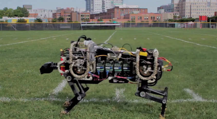 麻省理工学院最近公布了他们一直在研究的机器人猎豹的最新版本。这只机器猎豹显然会跑得比博尔特快。当我们知道机器人有多迟缓和笨重时,这怎么可能呢?这都是因为“绑定”算法,使得这个特殊的机器人可以像真正的动物一样“绑定”。机器人猎豹的体重与猫科动物相当,而且它被证明能够在崎岖的地形上奔跑最近在麻省理工学院的基利安庭院进行了测试。在室内测试中,机器人的速度达到了每小时10英里,甚至在扫清障碍后也保持了这一速度。麻省理工学院的研究人员推测,它最终将达到每小时30英里的速度。