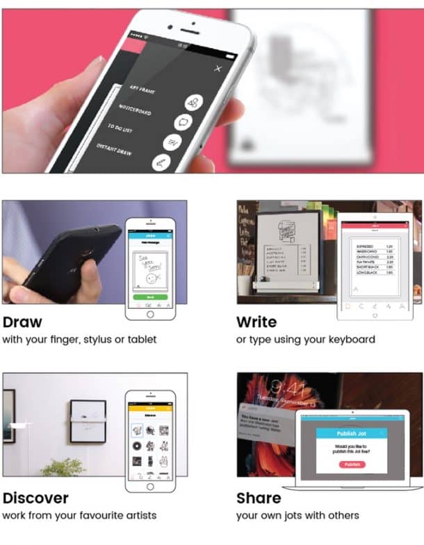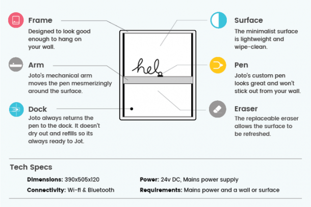 总部位于伦敦的Joto使用机械臂和标记物在连接到智能手机时在白板上绘制您想要的任何东西。艺术的范围从涂鸦,绘画,素描和图形,甚至是平凡的东西,例如购物清单,或者当您厌倦使用“老式”方式时呼叫日志。
