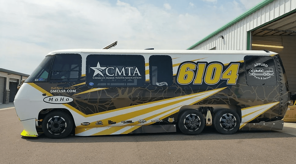 布瑞特·帕尔默,1977年的GMC的主人金斯利房车,开始打破陆地速度纪录类房车而提高意识夏科玛丽牙齿疾病。记录打102.7英里,由一个不同的2006年的GMC房车。