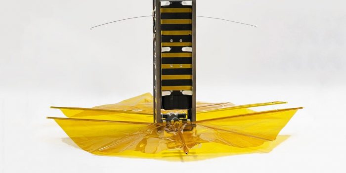 目前,美国宇航局正在跟踪超过27000块的轨道碎片,其中包括任何在地球轨道的人造物体,不再是一个有用的功能。它还包括废弃卫星保持在轨道上有时几十年他们的任务完成后。为解决这一问题,布朗的学生增加了一个3 d打印拖帆聚酰亚胺薄膜制成聚酰亚胺薄膜bread-loaf-sized立方体卫星。