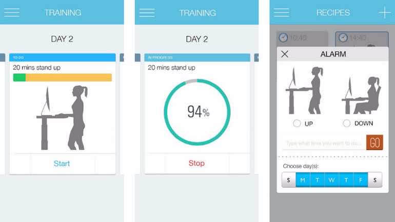 桌子为用户在一天开始时首选的站立位置做准备,以促进当天的健康起点。如果您想坐下,可以将命令“坐”配音,并且它将自动调整高度到您喜欢的坐姿高度。它可以在一个姿势上跟踪您的扩展位置,并提醒您不时更改它。跟随位于用户手腕的跟踪器,它可以帮助您跟踪覆盖距离和其他锻炼统计数据。如果一个人落后于时间表,这将建议他站起来,如果他做了足够的运动,这将建议他坐下。